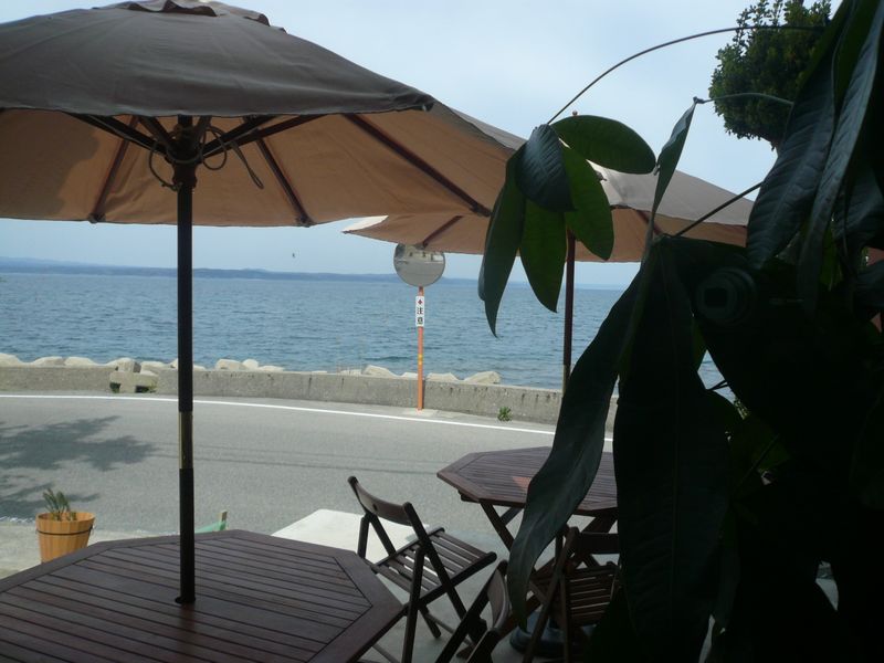 店の外のテラス。ぽかぽか天気のときは、テラスで海を眺めながらぼーっとするのもいいな。