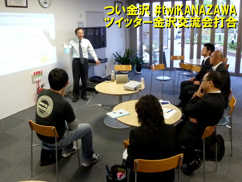 ITビジネスプラザ武蔵の交流スペースにて「つい金沢」の初回打合せ。当初、参加表明していた4名に加え、飛び入り参加もあった。通りすがり参加もいて、延べ参加者は約10名と、にぎやかな展開になった。初対面同士も多かったが、中身の濃い交流ができた。
