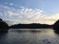 九十九湾の水面に映る空が美しい。