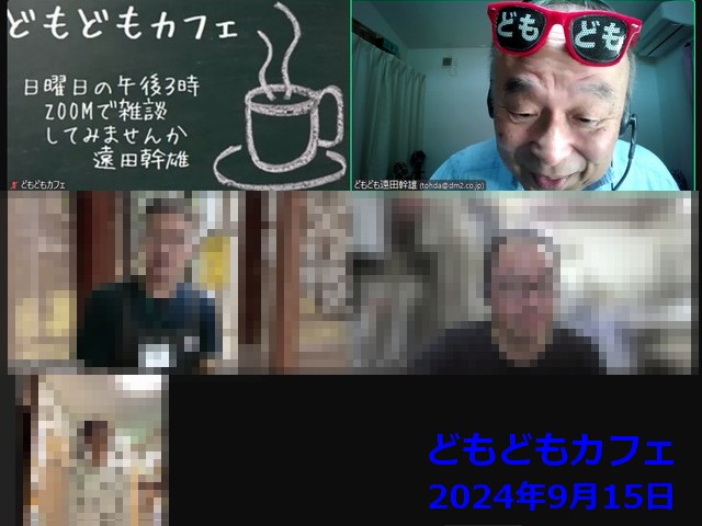 本日のどもどもカフェは秋のシルバーウィーク真っ只中での開催でした、行楽シーズンということもありあちこちでイベントが開催されていました。そういう背景もあり本日は少人数でのオンライン雑談でした。