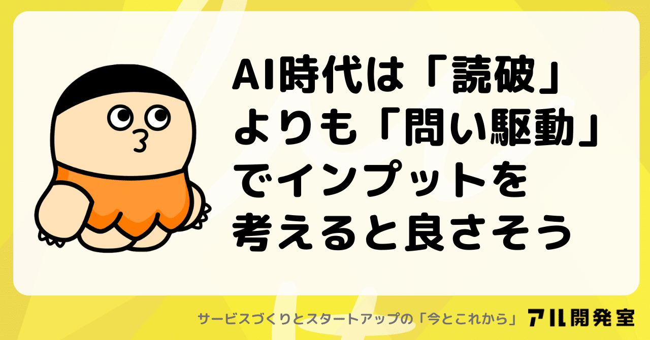 けんすうさんは「AI時代は『読破』よりも『問い駆動』でインプットを考えると良さそう」と題した記事で、膨大な情報量の時代には「すべてを読む」ことよりも、「問い」を中心に情報を集め、AIに問いかけて要点を抽出・検証するサイクルが重要だと述べています28。