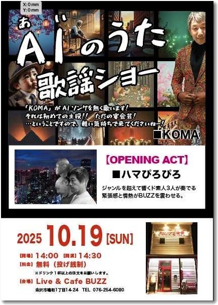 金沢鳴和にライブのできる”Live&CafeBar Buzz”が2019年2月から営業しています。そのライブにおじゃましました。