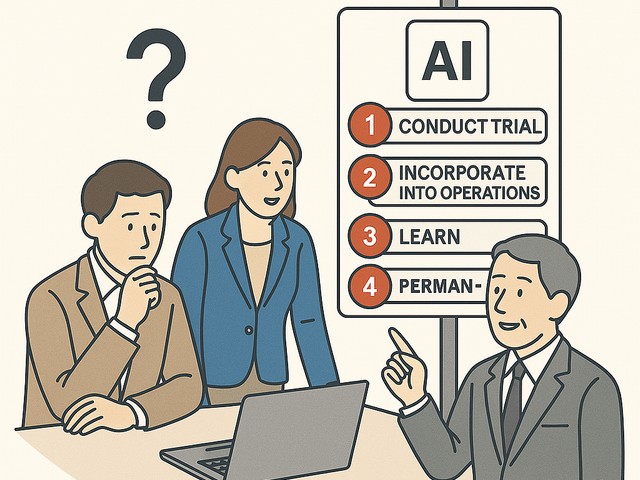 これはプロジェクトチーム内だけでなく、関係部署にも定期的に進捗を共有することが大切です。「AIって、意外と自分たちにもできそうだ」という雰囲気を社内に広げていくことが、組織学習の第一歩となります。