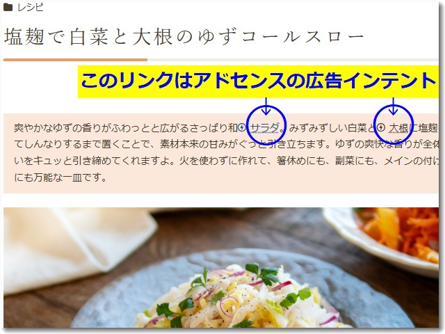「広告インテント(Ad Intents)」とは、Googleアドセンスが提供している「自動広告」の一種です。 記事内のテキストをGoogleが自動で解析し、「この単語、広告に繋がりそうだな」と判断すると、勝手にリンクに変換してしまう機能です。