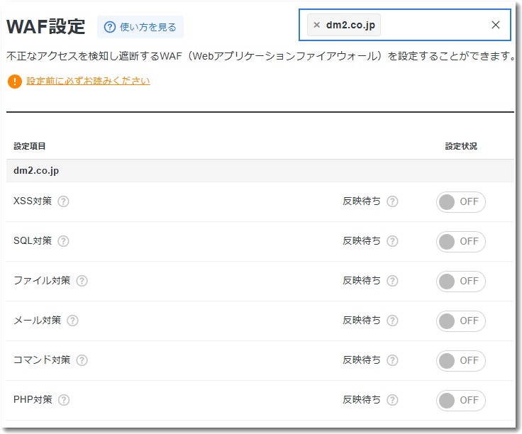 記事が無事に公開されたことを確認したら、必ずサーバーパネルに戻ってWAF設定を「ON」に戻します。