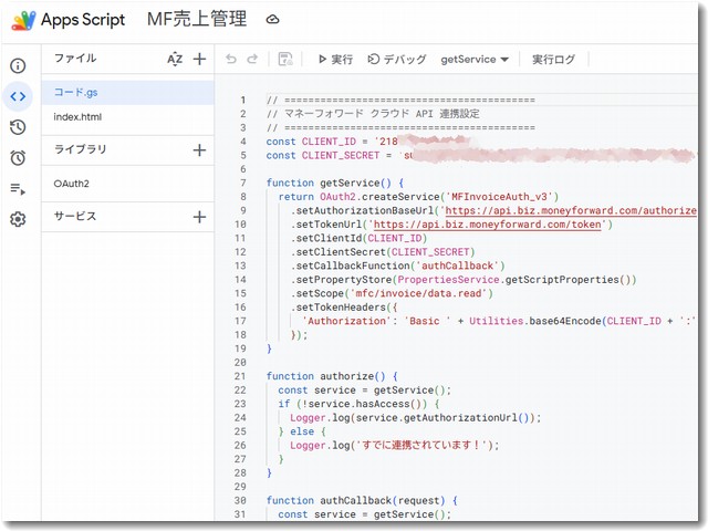 • 解決: 目視での確認をやめ、GAS側で service.getRedirectUri() という関数を実行し、システムが求めている100%正確なURIをログに出力させました 。それをそのままマネーフォワードの設定画面にコピー&ペーストすることで突破できました。