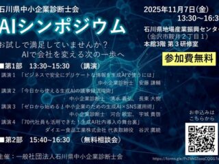 オフ会やオンラインの勉強会セミナ参加など AIで会社を変える次の一歩へ! 石川県中小企業診断士会「AIシンポジウム2025」開催のご案内 「AIを試してみたけれど、次の一歩をどう踏み出せばいいか分からない」「自社の業務に、どのようにAIを活かせるのか具体的なイメージが湧かない」このようなお悩みをお持ちの、石川県内の中小企業の経営者や従業員の皆さまへ。一般社団法人石川県中小企業診断士会が主催する「AIシンポジウム」が開催されます。このシンポジウムでは、AI、特に「生成AI」をビジネスで安全かつ効果的に活用するための具体的な方法を、専門... 2025.10.15 オフ会やオンラインの勉強会セミナ参加など