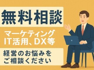 当社はコンサルティング会社ですので、経営相談やITサポートは有料でのサービスが基本になります。ただし、中小機構の経営相談対応 や 公的機関からの専門家派遣 は依頼する中小企業者さんにとっては無料でご利用いただけます。詳しくは上記のリンク先をご覧ください。